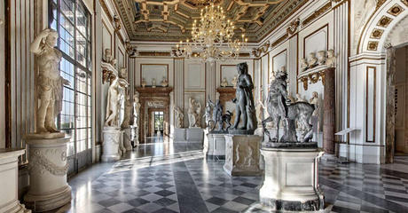 Lungo le pareti sono disposte preziose opere raffiguranti divinità, personaggi della mitologia e statue ritratto.