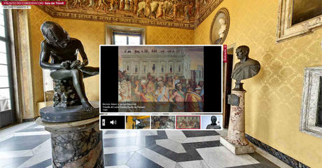 Il Tour Virtuale dei Musei Capitolini - una produzione Zètema Progetto Cultura realizzata da HQuadro - completamente interattivo e multimediale è sviluppato con la tecnologia della Realtà Virtuale Immersiva ed è realizzato mediante sofisticate tecniche di elaborazione e montaggio fotografico. Il tour permette la visita del museo effettuando una passeggiata virtuale, muovendosi all’interno degli ambienti. Grazie al movimento del mouse è possibile ruotare a 360°, in alto e in basso e zoomare fino ad avvicinarsi ai diversi elementi presenti nelle sale: sculture, quadri, dettagli architettonici, rivestimenti, soffitti e pavimenti.